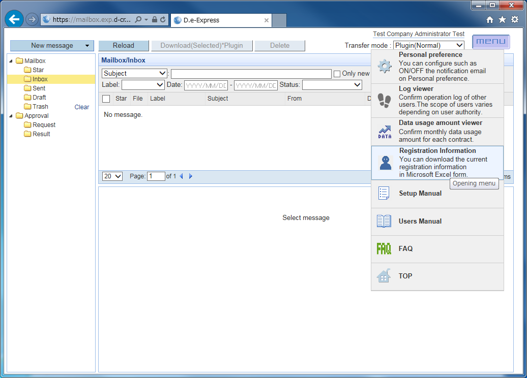 *Please refer to the user's manual for details. (Manuals > Registered User's > 19.(Administration)Refer to the registration information)