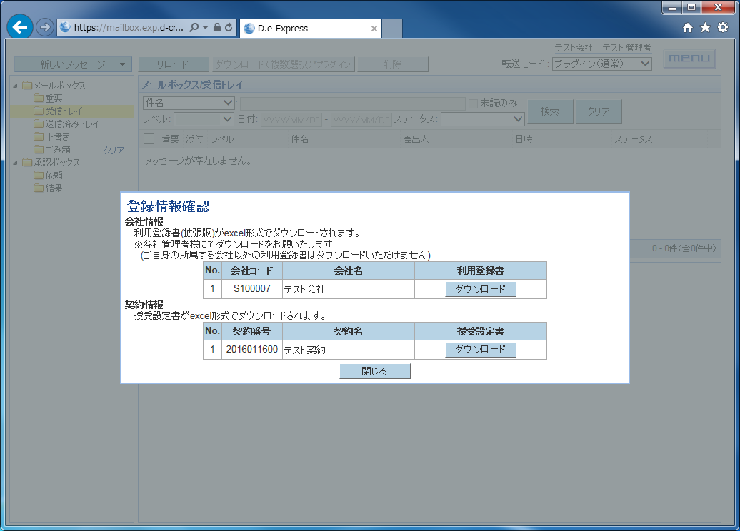 利用登録書(ユーザー情報)、授受設定書(授受設定情報)をダウンロードいただけるようになります。