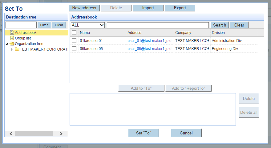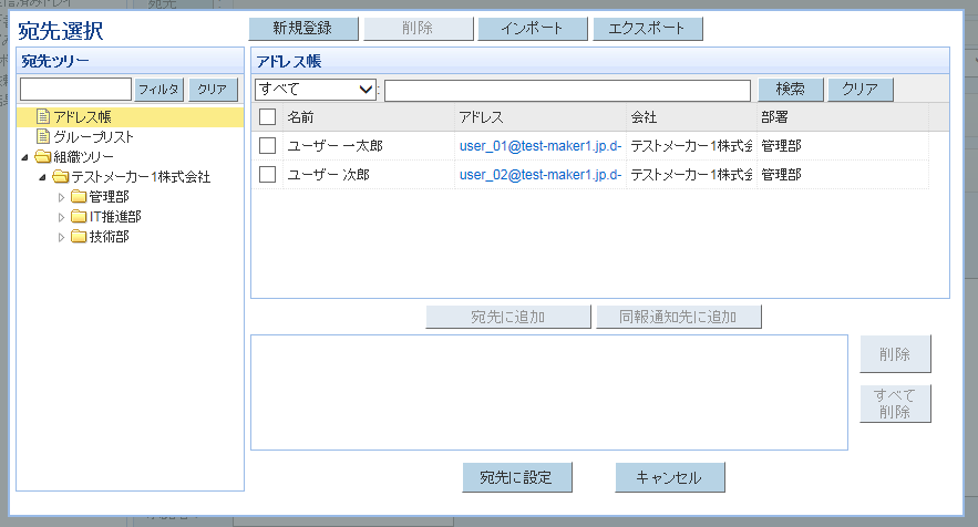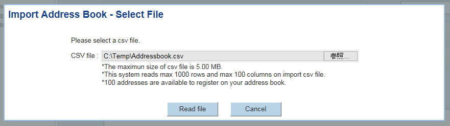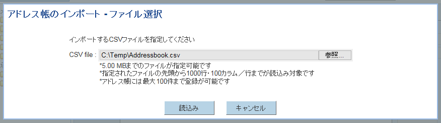 ※詳細な使い方については、操作マニュアル→登録ユーザ向け→10.アドレス帳→10.6 インポートをご確認ください。