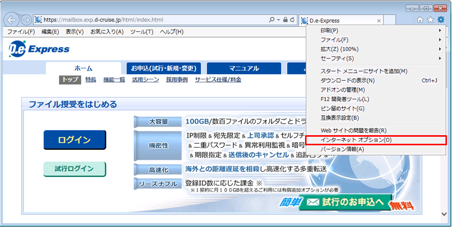 D.e-Expressでは、セキュリティ強化を目的として、インターネット通信暗号化方式の「TLS1.0」および「TLS1.1」を無効化します。
