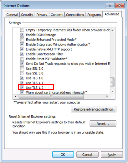 3. Make sure the "Use TLS 1.2" box in security is selected.