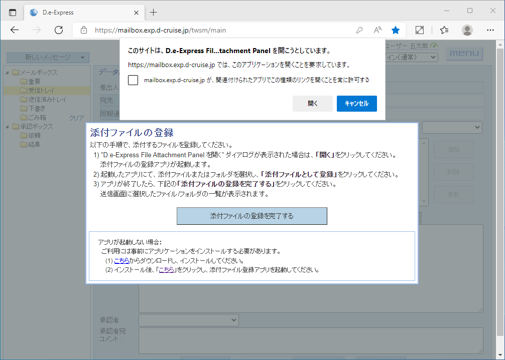 また、画面上部に、「D.e-Express File ... Panelを開こうとしています」 ダイアログが表示されます。