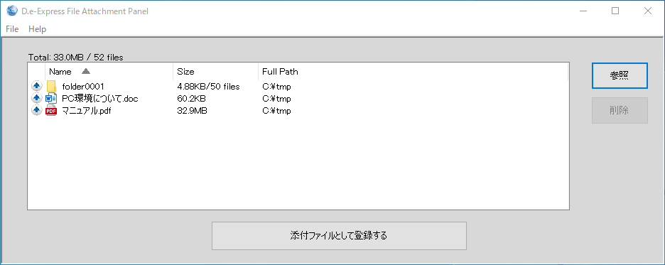 送りたいファイル/フォルダを選択し、添付ファイルとして登録できます。