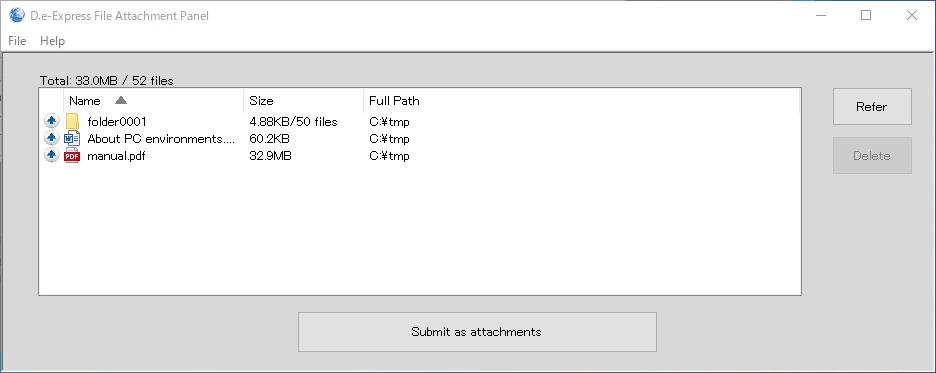 [3] Click the "Open" button in the dialog and the "D.e-Express File Attachement Panel"(plug-in) will launch.